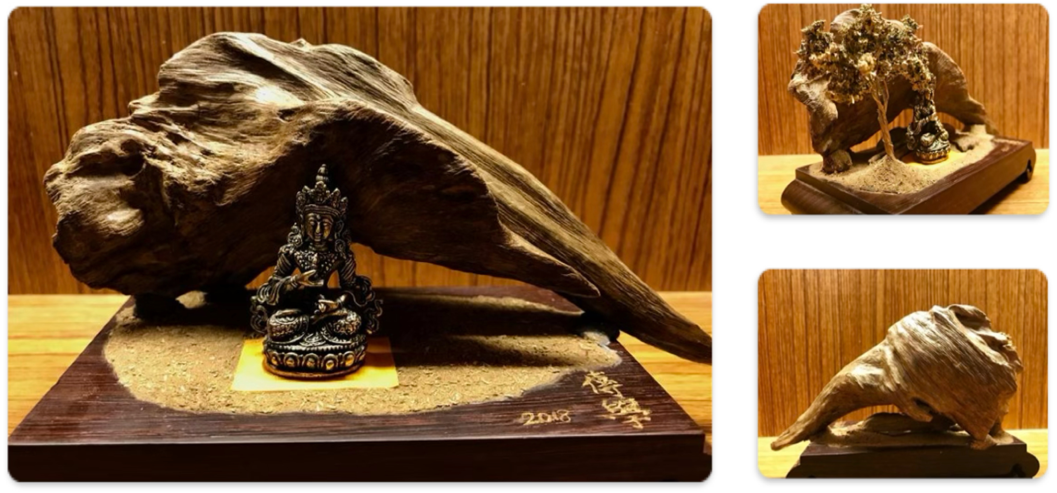 這件作品,取其泰國黃土沉的奇特造型,搭配作者巧思,創作成大日如來說法的意境,除了這件泰國黃土沉的稀有,再加上所創作的意境,而使這件更藝術氣息外,而變的更為具有收藏價值。